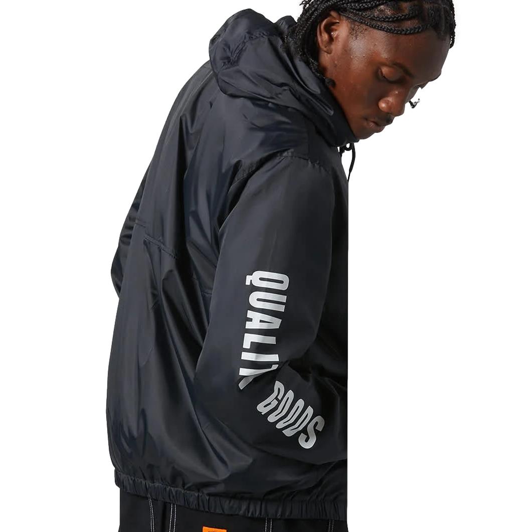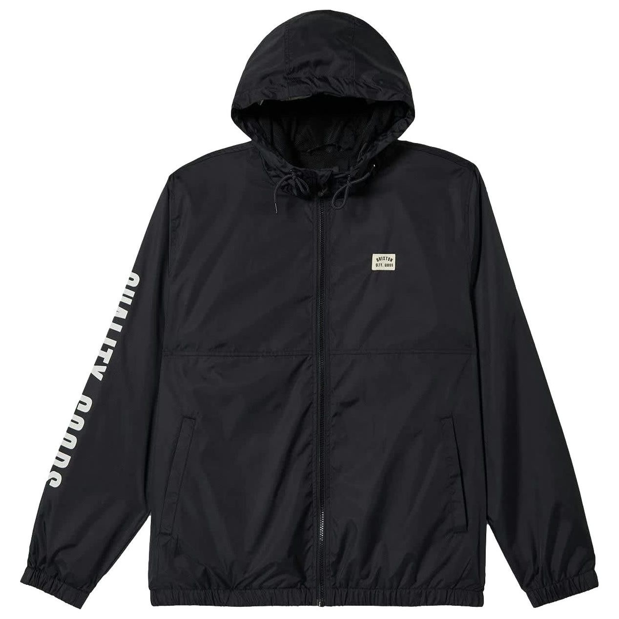 The Claxton Woodburn Lightweight Jacket is our reimagined take on the classic coaches jacket. Designed with a lightweight, wind-repellant shell and enhanced by a DWR coating, it offers weather resistance in unpredictable conditions. A mesh lining ensures breathability and all-day comfort, while adjustable drawcords at the hood and waist provide a customized fit. It's styled with an embroidered Brixton Woodburn logo on the chest and "quality goods" printed on the right sleeve. Whether youre layering for a brisk morning or taking on outdoor adventures, this jacket transitions effortlessly from activewear to everyday wear.