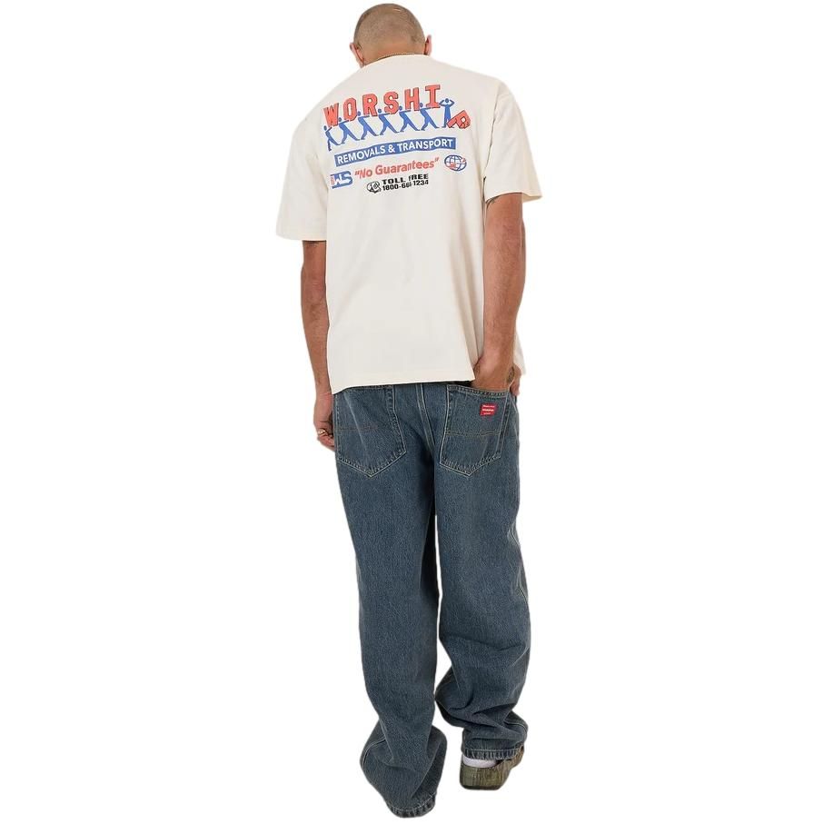 The Logistics Tee in Zine offers a relaxed, roomy fit in a versatile colourway. Made from heavy-wearing dry hand cotton jersey, this men's tee is crafted heavy and boxy with a classic crew neckline and a perfect length for tucking in or out. Finished with chest and back graphics in a mix of red and blue print for a bold, signature street look.