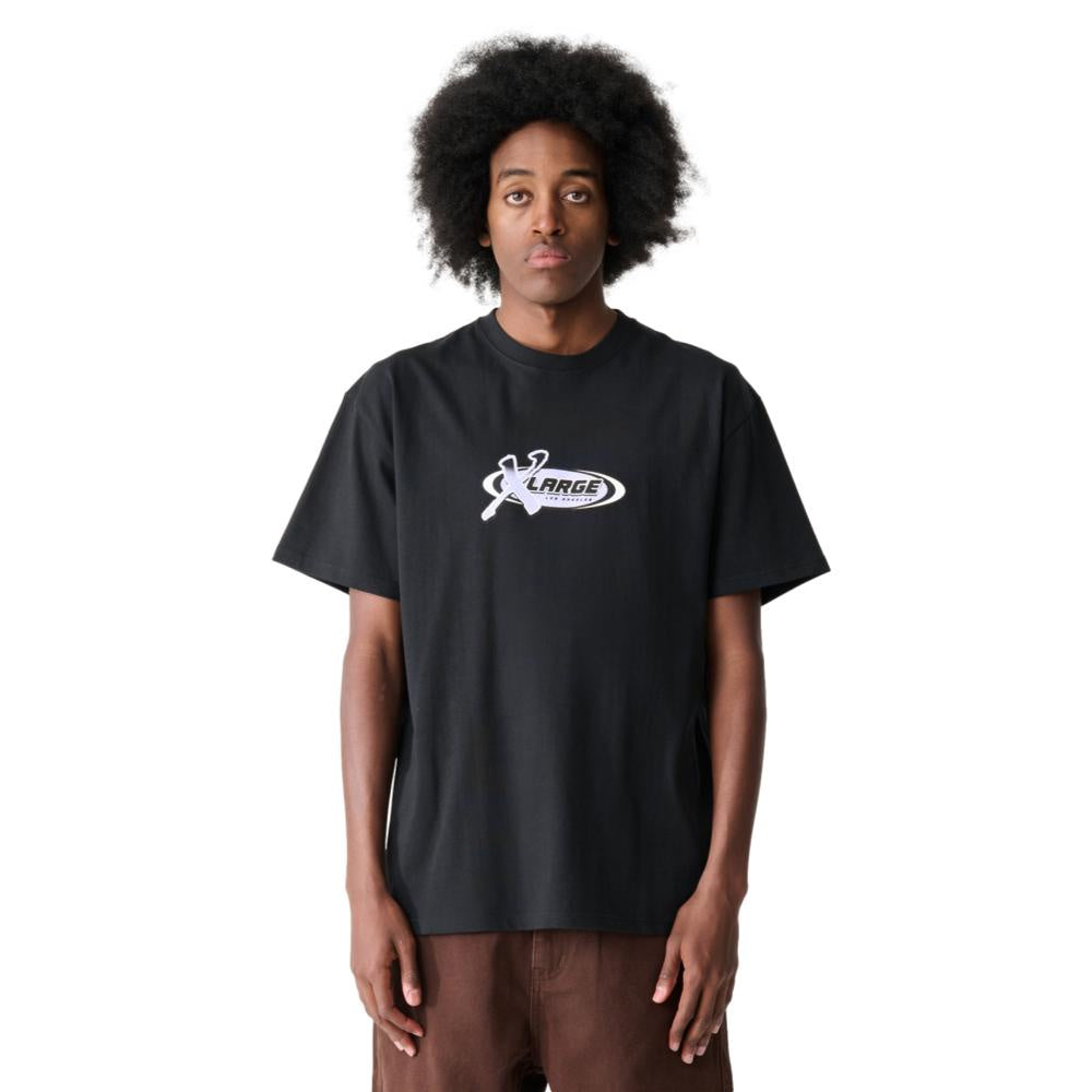 The Big X short-sleeve crewneck tee features a tailored boxy fit and is made from soft combed cotton jersey. It showcases durable plastisol prints, a ribbed neckline, and reinforced coverstitched seams. Designed with an oversized, unisex silhouette, this 100% cotton tee offers comfort and style with a substantial 240 gsm fabric weight.